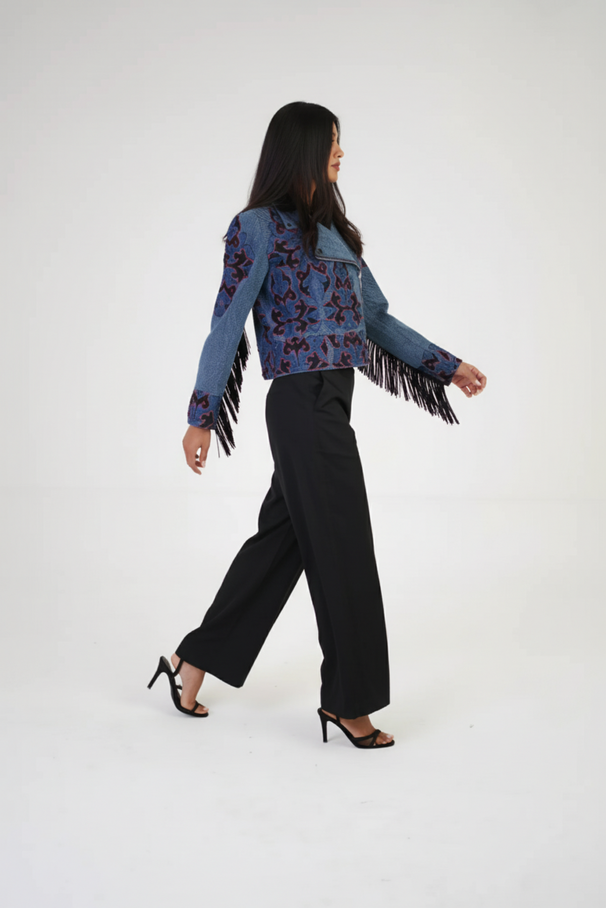 Make every entrance unforgettable with the Artful Denim Statement Jacket — where classic craftsmanship meets creative edge. This one-of-a-kind piece redefines denim with bold design details and a sculptural silhouette that turns everyday style into wearable art.
