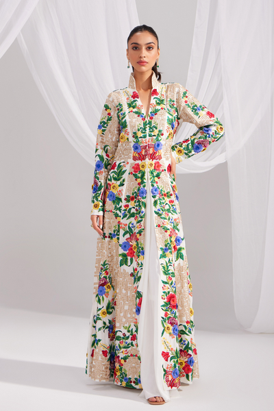 White Imperial Long Embroidered Jacket Dress