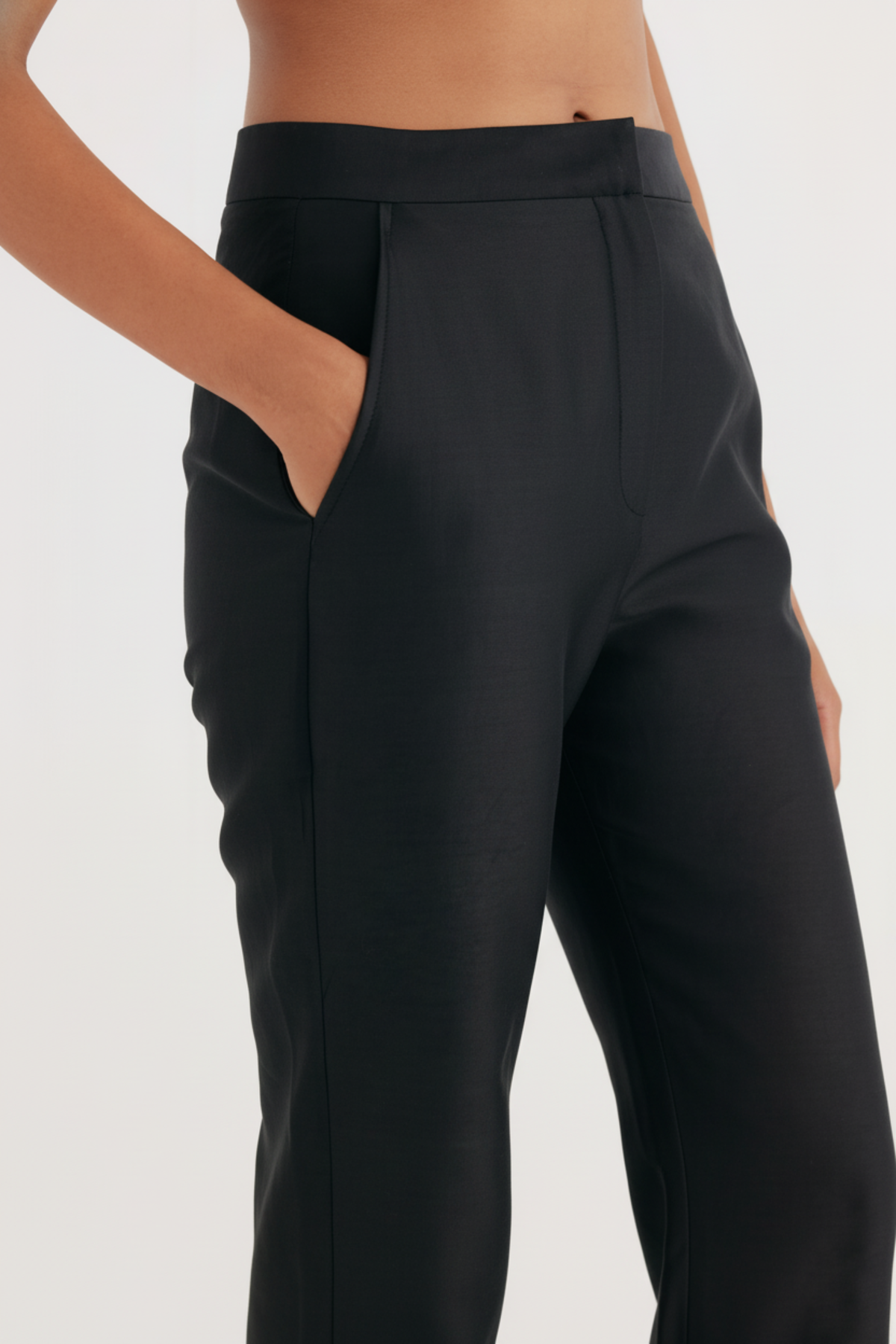 These plain pants are classic in Chanderi silk Fabric are ideal to be worn with jackets or team up with shirts. Comfortable and elegant, this color is versatile and evergreen.
