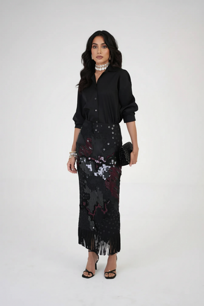 White Hand Embroidered Red Sequins Upbeat Shirt