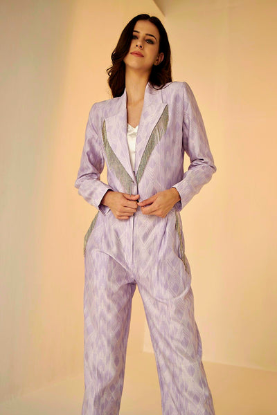 Lilac Shibori Short Jacket And Pant Set