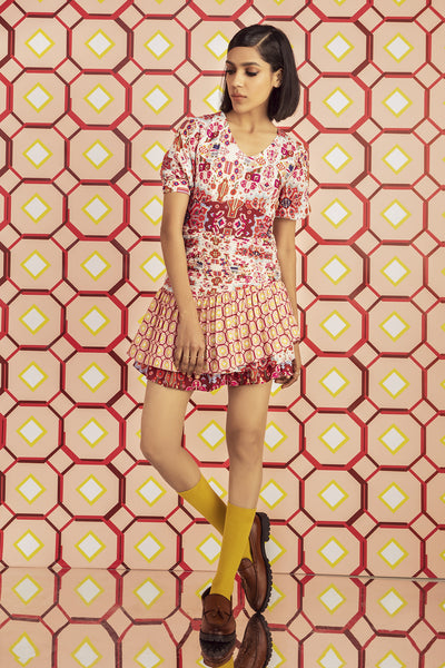 Happy Stripes Pleated Mini Dress in Handloom Organic Banana Silk