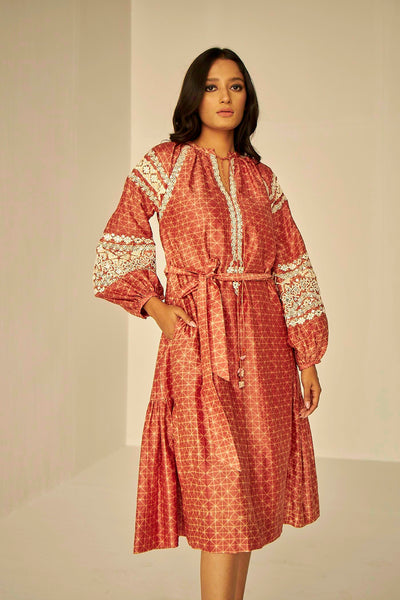 Mix Print Sunshine Dress In Handloom Organic Cotton And Banana Silk