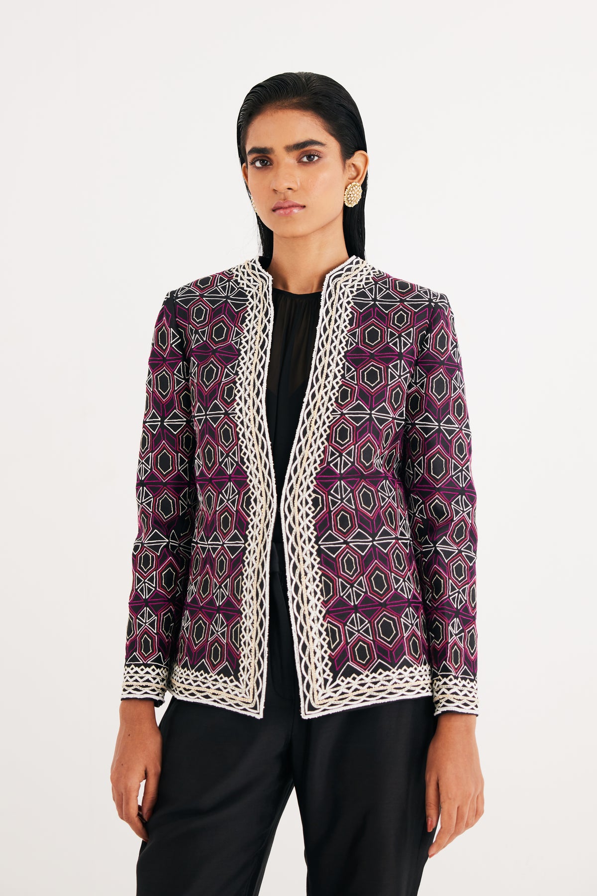 Black and Pink Mughal Jaal Jacket & Pant Set